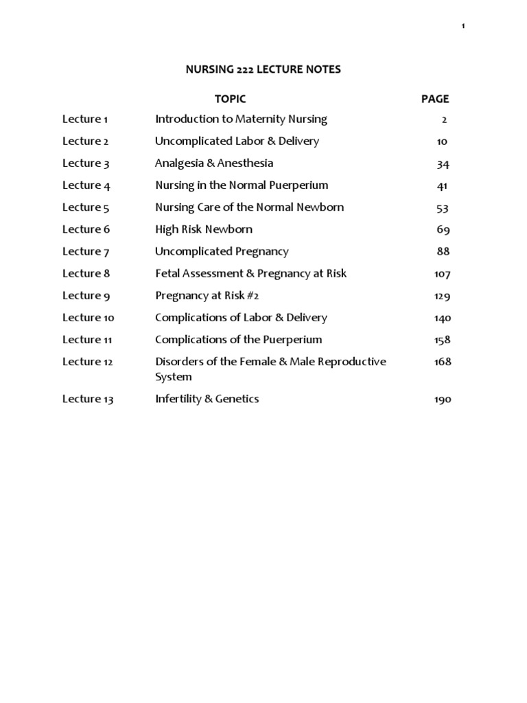 N222 Lecture Notes Sp13 Pdf Lactation Childbirth